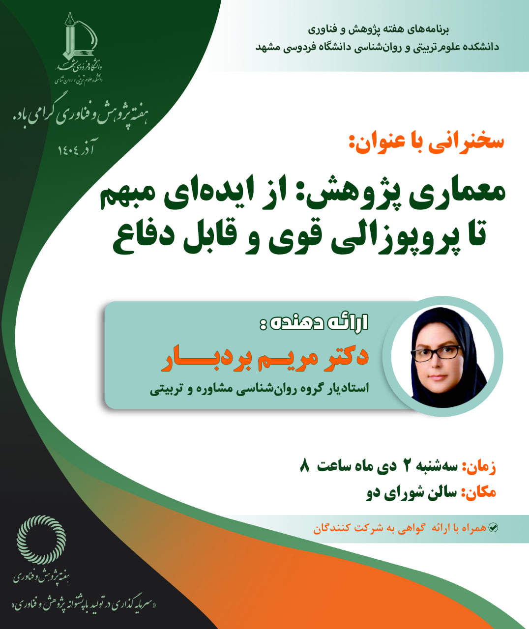 هفته پژوهش/ برنامههای روز سهشنبه 2 دی 1404